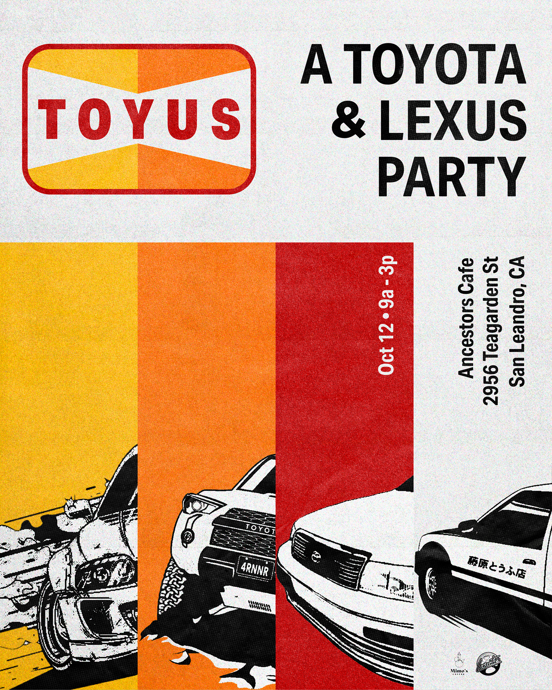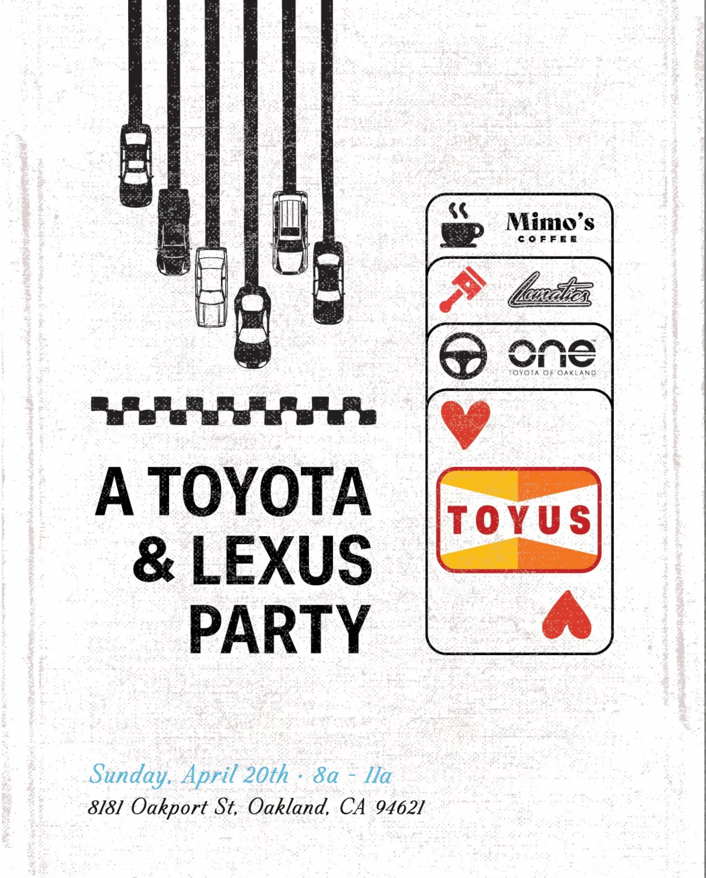 The format will be different from past TOYUS events as we will require registration for lot space. The lot is VERY limited on space but there is plenty of street parking.